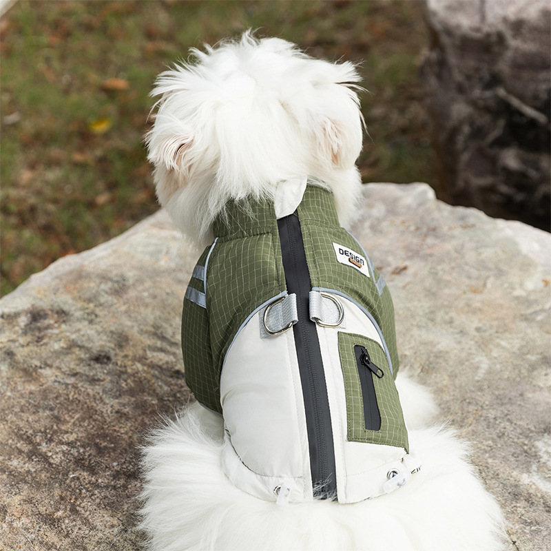 Product Description Equip your pet for outdoor exploration with this Outdoor Adventure Pet Vest! Featuring a khaki plaid and beige color-block design, it includes a built-in leash ring, a secure zipper pocket for essentials, aThe durable, padded fabric ensures warmth and protection, while the functional details like adjustable straps and a smooth zipper make it perfect for hikes, walks, or urban outings. Ideal for pet parents who prioritize both style and practicality, this vest lets your furry companion embrace adventure in comfort and fashion. A must-have for the active, design-conscious pet!