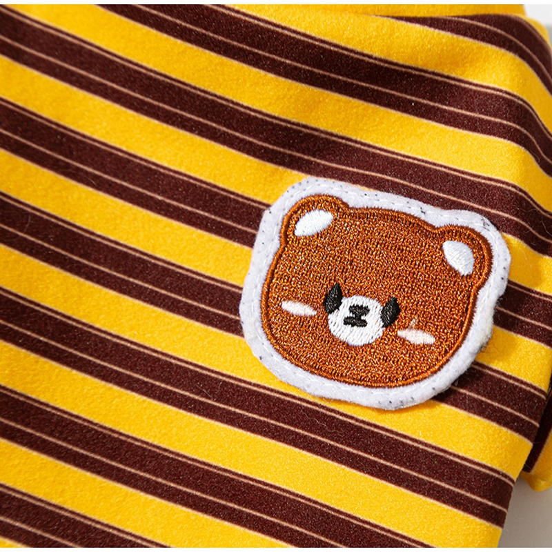 Product Description Update your pet’s casual wardrobe with this New Release Striped Pet Homewear! Available in two designs—yellow-brown stripes with a bear patch and black-white stripes with a cat patch—each T-shirt features soft, breathable fabric for all-day comfort and a relaxed fit for easy movement. Perfect for indoor lounging or casual outings, these tees combine trendy stripes, adorable cartoon details, and new-release appeal, making them a must-have for pet parents who want their furry companions to stay stylishly comfortable at home or on the go.