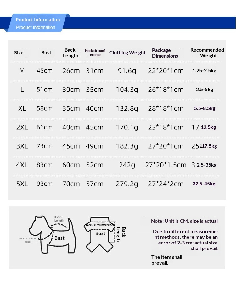 Size: M2.5-5kg, L6-10kg, XL11-17kg, XXL18-25kg, 3XL25-35kg, 4XL35-65kg, 5XL65-95kg, 6XL85-115kg